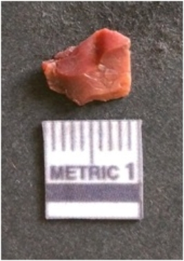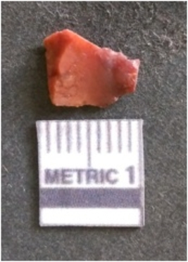 | Description / विवरण | The chalcedony flake is pale in color and translucent in appearance. The piece has s harp flaked ends and a bulbous end due to flaking. The flake has a crypto-crystalline silica matrix with reddish in color. |