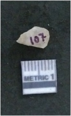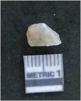 | Description / विवरण | It is a chalcedony flake, with a bulb of percussion on the ventral side. Cortex on one end. |
