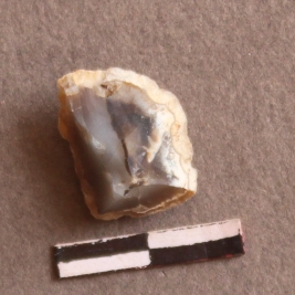 | Description / विवरण | It is a milky Quartz. Cortex on the other side of the surface. Flake ridges on them due to heavy flaking. |