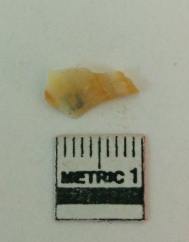 | Description / विवरण | Jasper is a cryptocrystalline piece with cut edges as a result of flaking. |