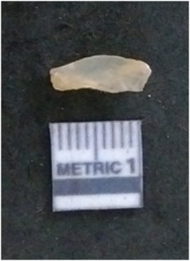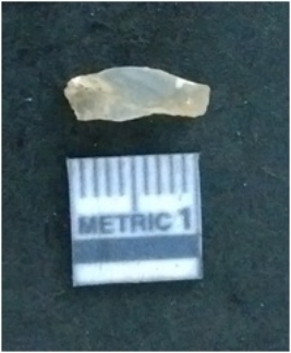 | Description / विवरण | It is a chalcedony flake, with a bulb of percussion on the ventral side. Cortex on one end. |