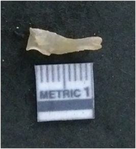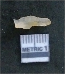 | Description / विवरण | It is a chalcedony flake, with a bulb of percussion on the ventral side. Cortex on one end. |