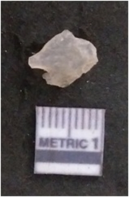 | Description / विवरण | It is a chalcedony flake, with a bulb of percussion on the ventral side. Cortex on one end. |