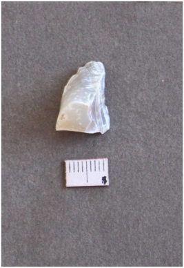 | Description / विवरण | The quartz piece is rounded on one side and a sharp point on the other. Negative bulb is seen on the piece. |