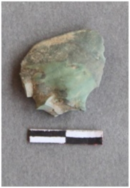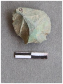 | Description / विवरण | Chert is a green fragment with prominent bulb of percussion. |