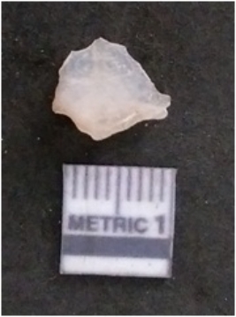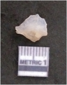 | Description / विवरण | It is a chalcedony flake, with a bulb of percussion on the ventral side. Cortex on one end. |