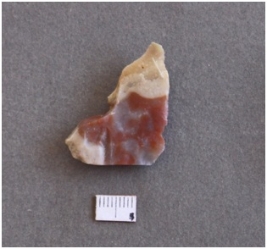 | Description / विवरण | It s a jasper fragment. It has a negative bulb of percussion. Multiple ripples as a result of flaking. |