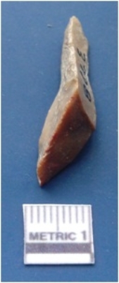 | Description / विवरण | It is a lithic debitage, the flakes are clearly seen on the dorsal surface. The ventral surface is plain. The sides are sharp. It is brownish in color. |