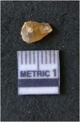 | Description / विवरण | The Chalcedonyy flake is pale yellow in color. Translucent in appurtenance. The piece is shows sharp pointed ends and flake scars on the surface. As a result of flaking. |