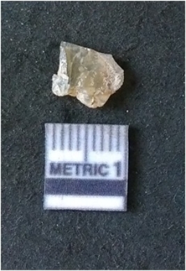 | Description / विवरण | The Chalcedonyy flake is pale yellow in color. Translucent in appurtenance. The piece is shows sharp pointed ends and flake scars on the surface. As a result of flaking. |