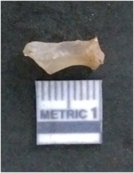| Description / विवरण | It is a chalcedony flake, with a bulb of percussion on the ventral side. Cortex on one end. |