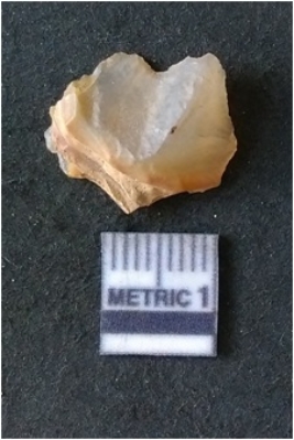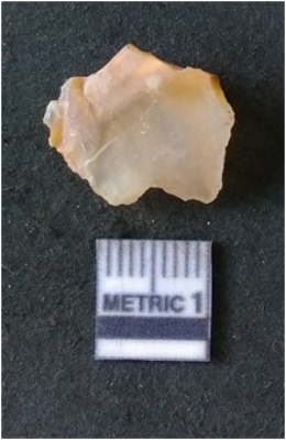 | Description / विवरण | The Chalcedonyy flake is pale yellow in color. Translucent in appurtenance. The piece is shows sharp pointed ends and flake scars on the surface. As a result of flaking. |