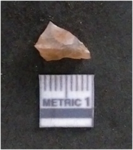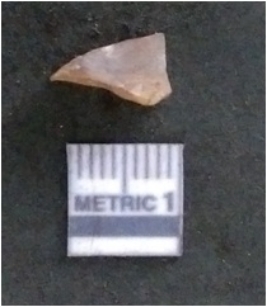 | Description / विवरण | It is a chalcedony flake, with a bulb of percussion on the ventral side. Cortex on one end. |