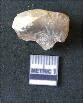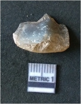 | Description / विवरण | The agate piece is translucent in appurtenance, with angular flaked edges and a bulb of percussion. The piece shows flake scars on the surface. |