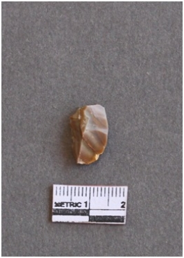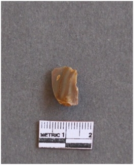 | Description / विवरण | It s a chert flake. Sharp on one side and has a ridge as result of flaking. |