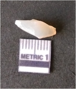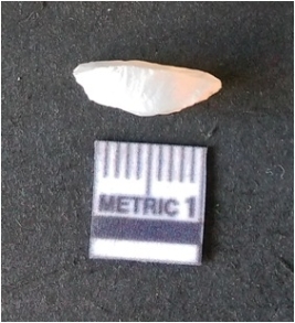 | Description / विवरण | The quartz fragment shows prominent flaks scars and sharp flaked ends as a result of flaking. The piece is translucent white and shows cryptocrystalline matrix. |