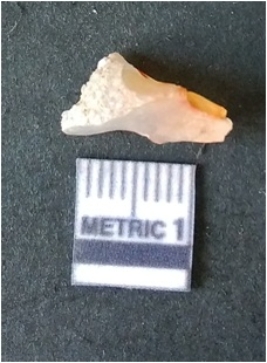 | Description / विवरण | The Chalcedonyy flake is pale yellow in color. Translucent in appurtenance. The piece is shows sharp pointed ends and flake scars on the surface. As a result of flaking. |