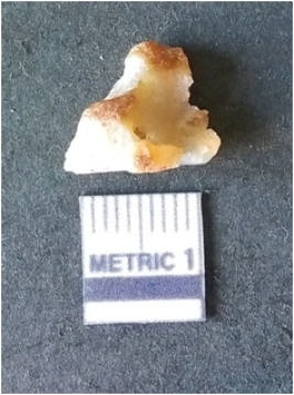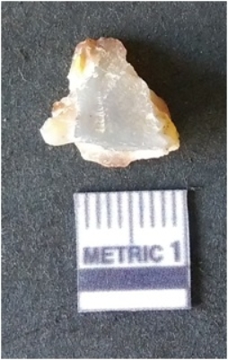 | Description / विवरण | The chalcedony flake is pale yellow in color. Translucent in appurtenance. The piece is shows sharp pointed ends and flake scars on the surface. As a result of flaking. |