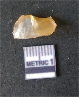 | Description / विवरण | The chalcedony flake is pale yellow in color. Translucent in appurtenance. The piece is shows sharp pointed ends and flake scars on the surface. As a result of flaking. |