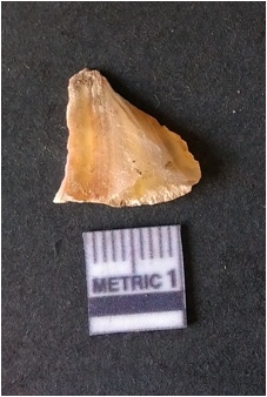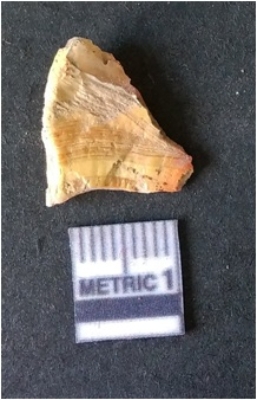 | Description / विवरण | The chalcedony flake is pale yellow in color. Translucent in appurtenance. The piece is shows sharp pointed ends and flake scars on the surface. As a result of flaking. |
