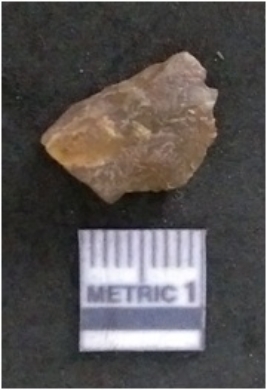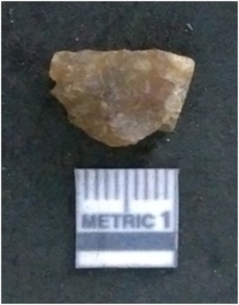| Description / विवरण | It is a chalcedony flake, with a bulb of percussion on the ventral side. Cortex on one end. |