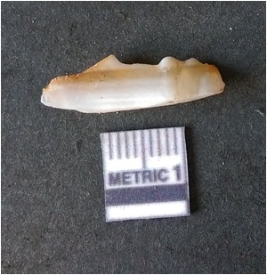 | Description / विवरण | The banded agate piece is crystalline in nature, with a smooth fracture pattern and visible bands on the flakes sides. |