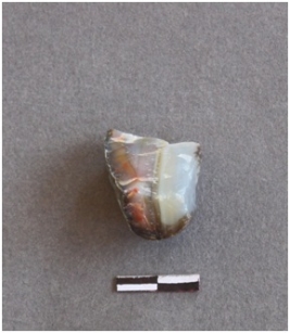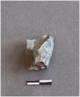| Description / विवरण | The jasper piece is roughly triangular, with sharp edges and some negative bulb of percussion. The fragment has cortex on two sides. |