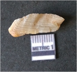 | Description / विवरण | The banded agate piece is crystalline in nature, with a smooth fracture pattern and visible bands on the flakes sides. |
