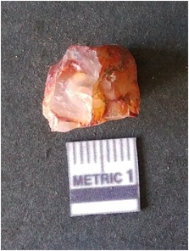 | Description / विवरण | The chalcedony flake is pale yellow in color. Translucent in appurtenance. The piece is shows sharp pointed ends and flake scars on the surface. As a result of flaking. |
