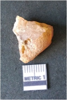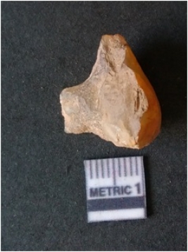 | Description / विवरण | The chalcedony flake is pale yellow in color. Translucent in appurtenance. The piece is shows sharp pointed ends and flake scars on the surface. As a result of flaking. |