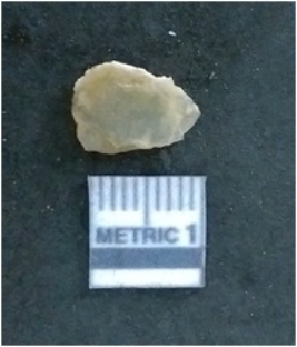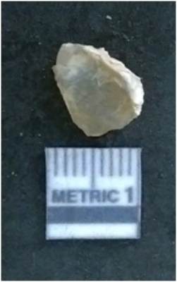 | Description / विवरण | It is a chalcedony flake, with a bulb of percussion on the ventral side. Cortex on one end. |