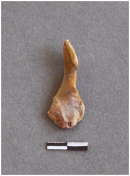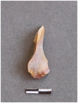 | Description / विवरण | The chalcedony fragment is an elongated flake with sharp edges and pointed end. |