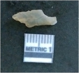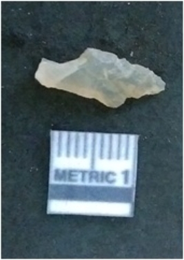 | Description / विवरण | It is a chalcedony flake, with a bulb of percussion on the ventral side. Cortex on one end. |