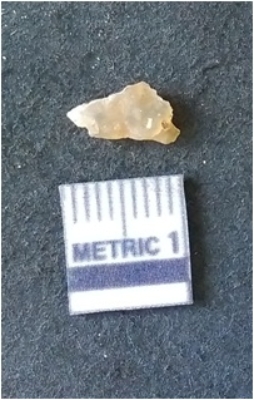 | Description / विवरण | The chalcedony flake is pale yellow in color. Translucent in appurtenance. The piece is shows sharp pointed ends and flake scars on the surface. As a result of flaking. |
