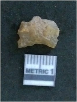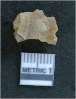 | Description / विवरण | It is a chalcedony flake, with a bulb of percussion on the ventral side. Cortex on one end. |