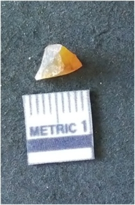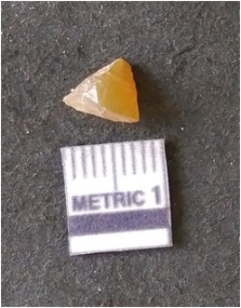 | Description / विवरण | The chalcedony flake is pale yellow in color. Translucent in appurtenance. The piece is shows sharp pointed ends and flake scars on the surface. As a result of flaking. |