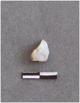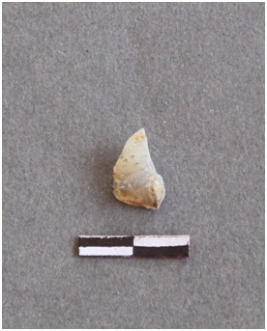 | Description / विवरण | The chalcedony fragment is with a pointed end and a sharp mid rib due to flaking |
