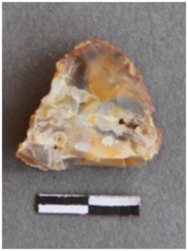 | Description / विवरण | Chalcedony cortex on the end, ripple on the surface due to heavy percussion. |