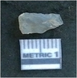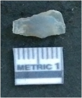 | Description / विवरण | It is a chalcedony flake, with a bulb of percussion on the ventral side. Cortex on one end. |