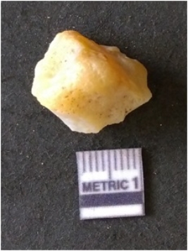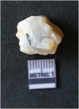 | Description / विवरण | The agate nodule is of crypto crystalline material and shows surfacial flake scars due to flaking. The piece has sharp edges and negative bulb of percussion. |