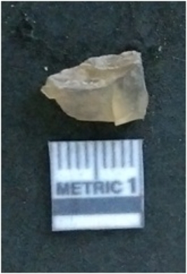 | Description / विवरण | It is a chalcedony flake, with a bulb of percussion on the ventral side. Cortex on one end. |