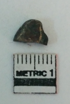 | Description / विवरण | The dark schist piece has flake scars on the surface and sharp edges as a result of flaking. |