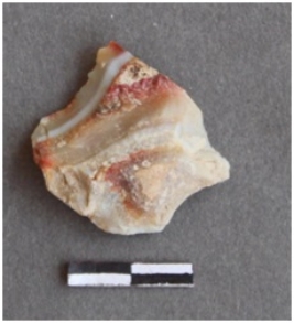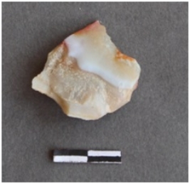 | Description / विवरण | Chalcedony cortex on side, with a striking platform, bulb on the ventral side. |