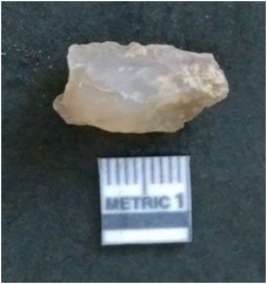 | Description / विवरण | It is a chalcedony flake, with a bulb of percussion on the ventral side. Cortex on one end. |