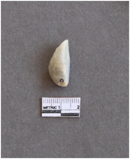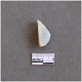 | Description / विवरण | The fragment has sharp edge due to flaking. It is an oblong piece slightly rounded with a point at one end. |
