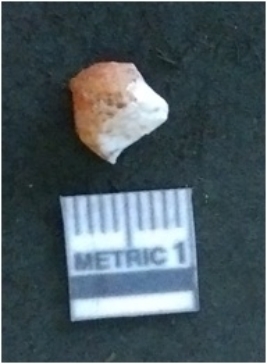 | Description / विवरण | It is a chalcedony flake, with a bulb of percussion on the ventral side. Cortex on one end. |