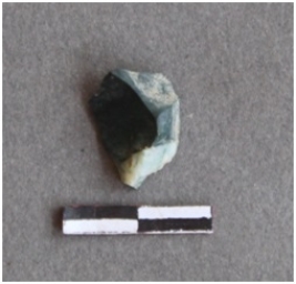 | Description / विवरण | It is jasper fragment, with sharp edges and flake ridges on the surface. |