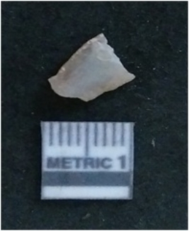 | Description / विवरण | It is a chalcedony flake, with a bulb of percussion on the ventral side. Cortex on one end. |