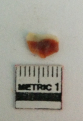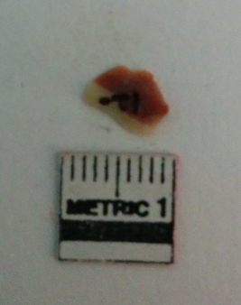 | Description / विवरण | Jasper is a cryptocrystalline piece with cut edges as a result of flaking. |