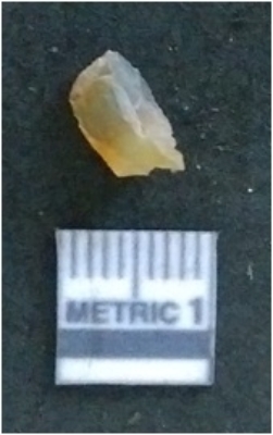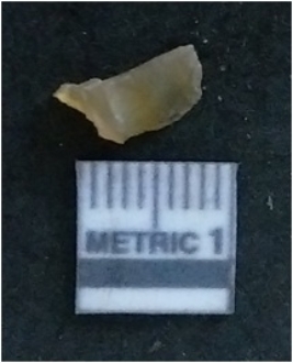 | Description / विवरण | It is a chalcedony flake, with a bulb of percussion on the ventral side. Cortex on one end. |